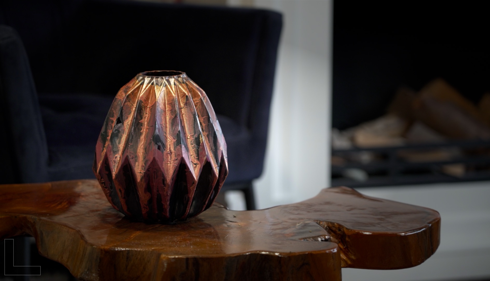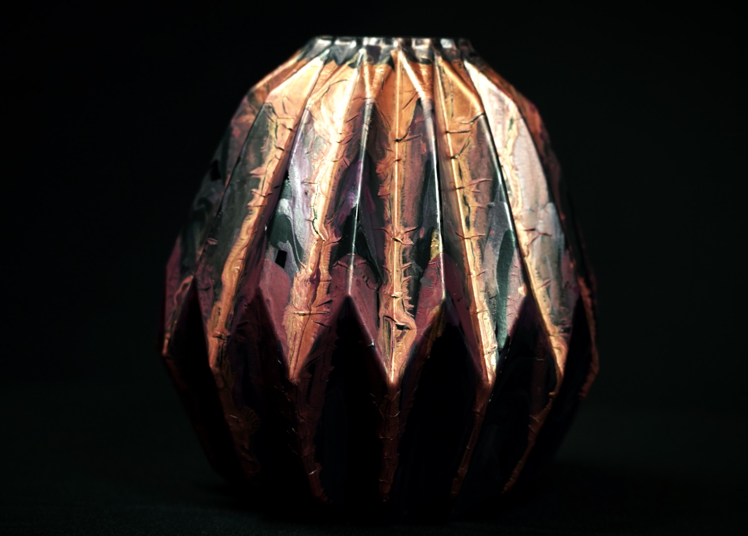 Alsof het glas gevouwen is, ik vond het zo’n mooi object dat ik het voorzien heb van stevige maar sierlijke kleuren.